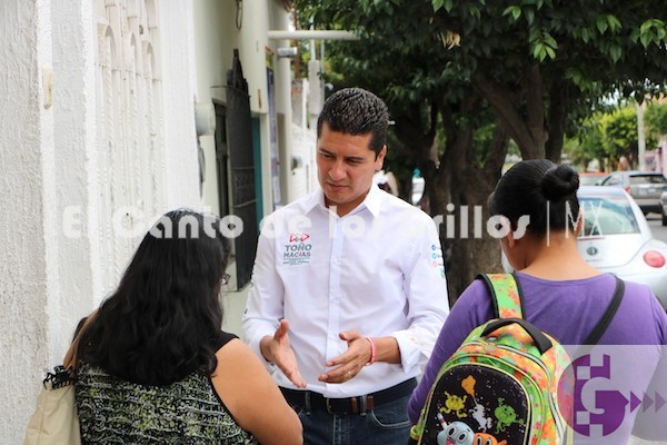 En el recorrido de puerta por puerta en la colonia Fátima, en este municipio, Toño Macías, candidato del Partido Revolucionario Institucional a diputado federal por el segundo distrito, reiteró su compromiso de eliminar los privilegios de los funcionarios públicos.