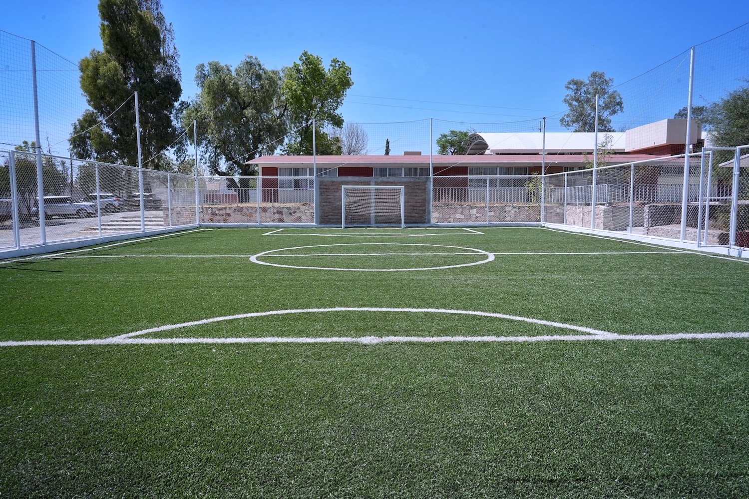 El secretario de Obra Pública, Francisco Villegas Solís, informó que los trabajos realizados incluyen: la instalación de 504 metros cuadrados de pasto sintético deportivo de polietileno y tufting de 37 milímetros de espesor, 197 metros cuadrados de malla ciclónica perimetral con 2.5 metros de altura, 92 metros de tela de nylon, dos rejas de acceso de 1 metro de ancho y dos porterías. Esta obra beneficiará directamente a 650 estudiantes de la zona.