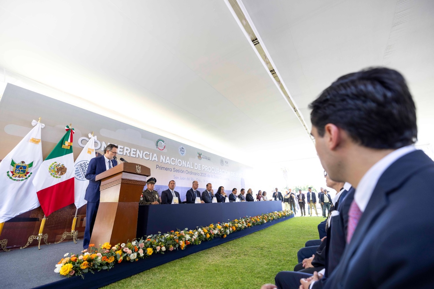 En representación del fiscal general de la República y presidente de la Conferencia Nacional de Procuración de Justicia, Alejandro Gertz Manero, el fiscal especializado de Control Regional, Germán Adolfo Castillo Banuet, enfatizó que con coordinación, colaboración, inteligencia e investigación, no solo se contrarresta la inseguridad sino también se abate la impunidad y se construye un México más seguro y en paz.