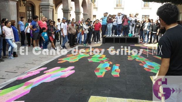 La obra es del maestro Jesús Manzanares Enríquez, quien durante cuatro días realizó una intervención sobre el piso de Plaza de Armas, utilizando gis pastel para realizar los trazos y relleno de la figura con colores.