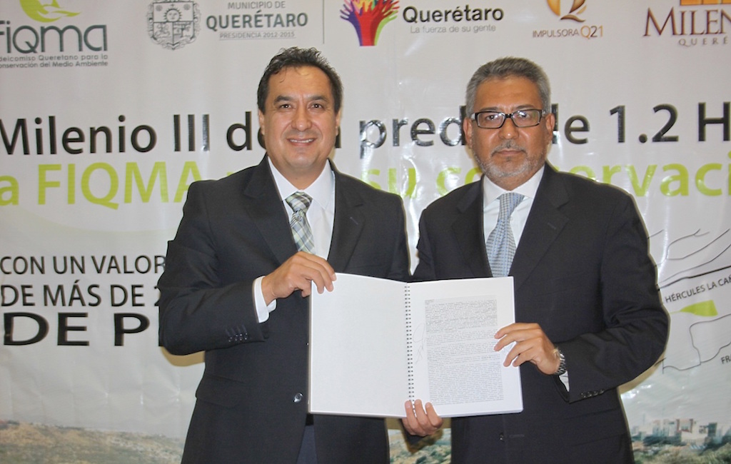 En rueda de prensa, el Director del Fideicomiso Queretano para Conservación del Medio Ambiente (FIQMA), José Arias González, dio a conocer que Milenio III, a través de la constructora y desarrolladora Q21, donó 1.2 hectáreas a la administración municipal que encabeza el Presidente Roberto Loyola Vera, con lo que se incrementa el patrimonio ambiental de la población queretana.
