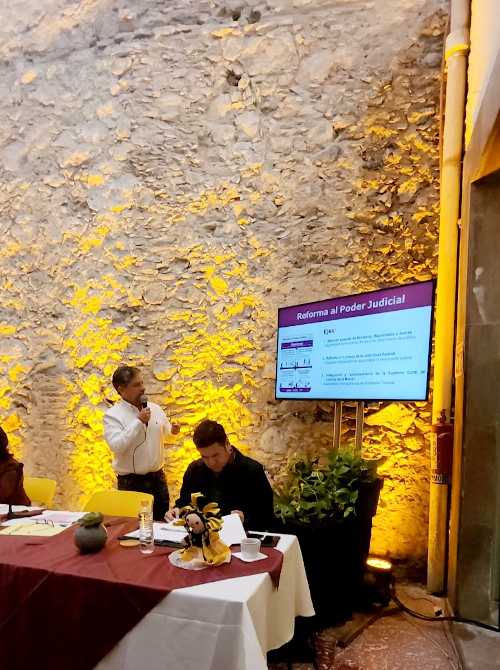 En la presentación de la mecánica a seguir, señaló que se da inicio en Querétaro con los trabajos encaminados a generar los foros y asambleas informativas para abordar dicha iniciativa que contempla, entre otros rubros: la elección popular de ministros, magistrados y jueces para otorgar legitimidad democrática de los impartidores de justicia; la reforma al Consejo de la Judicatura Federal, que considera contar con órganos independientes para vigilar el desempeño judicial; y la integración y funcionamiento de la Suprema Corte de Justicia de la Nación, con base a la austeridad y transparencia en el Máximo Tribunal.