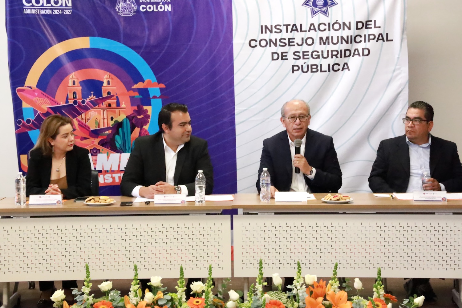 El presidente municipal, Gaspar Trueba Moncada, acompañado de su esposa Elena Arreguín de la Torre, presidenta del DIF de Colón, instaló formalmente el Consejo Municipal de Seguridad Pública, en un acto que contó con la presencia de autoridades civiles y militares del estado de Querétaro.