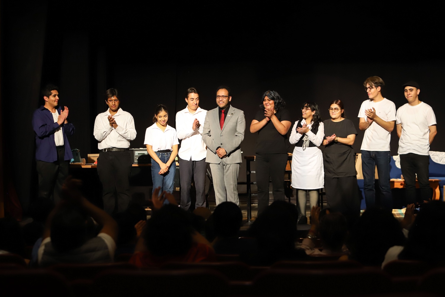 La presentación es producto de la labor de 13 personas, entre las que destaca el docente a cargo de la asignatura optativa de teatro, Germán Francisco González Valdez; y fueron la base para la realización de la misma, pues compartieron la responsabilidad de organizar y gestionar necesidades básicas de este proyecto, así como de ser el elenco en el mismo.