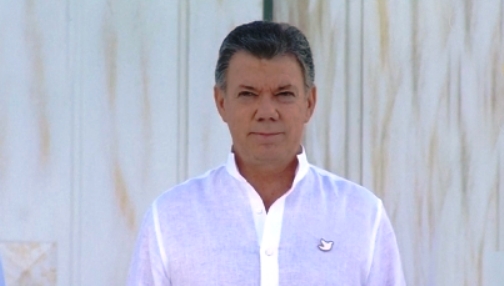 Santos dio “gracias a Dios, la paz está cerca. La paz es posible. Es la hora de la paz. Juntos, como nación, lograremos construirla. Los invito a todos a que unamos nuestras fuerzas, nuestras mentes y nuestros corazones en este gran propósito nacional para que así, todos ganemos el más importante premio: la paz de Colombia”.