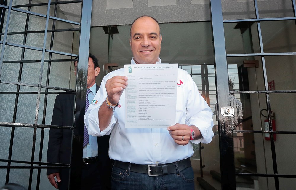 A sugerencia y en atención al Colegio Médico de Querétaro, que encabeza el Dr. Genaro Vega Malagón, el candidato Roberto Loyola Vera, se realizó el examen toxicológico en la Unidad Médica La Capilla, ubicada en Prolongación Zaragoza No. 31 Col. La Capilla; fue informado que sus resultados estarán siendo entregados pasado este medio día.