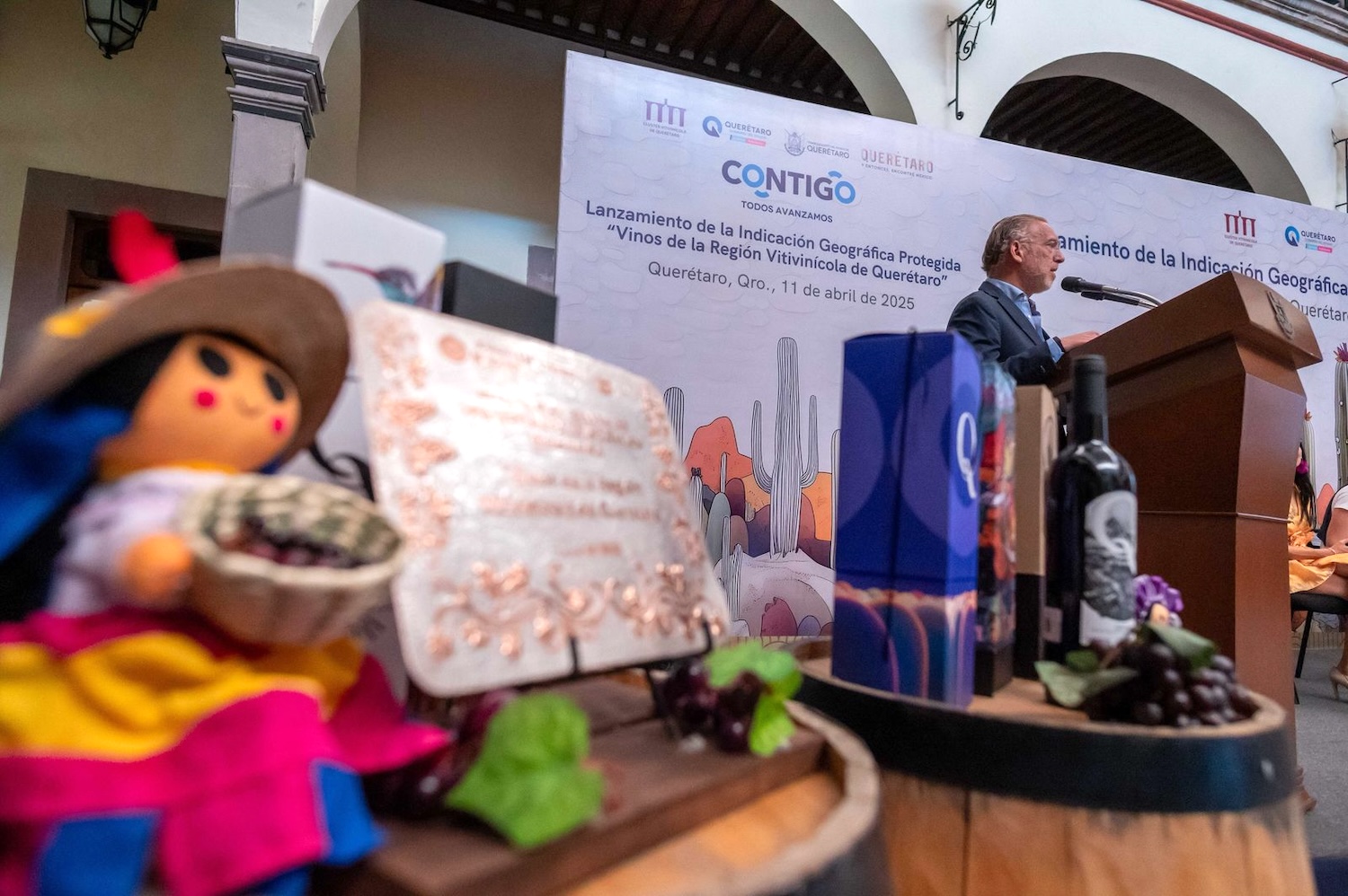 El gobernador del estado, Mauricio Kuri González, encabezó el lanzamiento de la primera Indicación Geográfica Protegida de vino en el país, que otorgó el Instituto Mexicano de la Propiedad Industrial (IMPI) a los vinos de la región vitivinícola de Querétaro, distintivo que fortalece la identidad del vino queretano, garantiza la calidad del producto, lo protege de imitaciones y facilita el acceso a mercados nacionales e internacionales, permitiendo llevar el nombre del estado con orgullo y satisfacción a las mesas de la más alta gastronomía mundial.