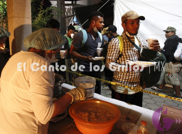 Algunos de ellos no habían comido desde el inicio de su periplo esta mañana, así que recibieron con gusto los alimentos consistentes en arroz, pollo frito, ensalada de atún, huevo con jamón y chicharrón en salsa verde.