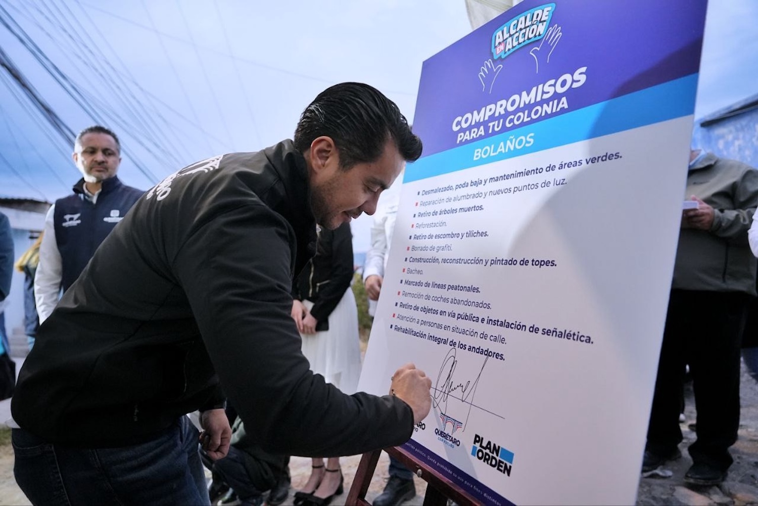 “Acciones concretas, no venimos nada más a echar rollo y echar discurso, ahorita les digo las acciones en concreto que van a iniciar desde esta misma tarde y que ustedes tienen que ver un beneficio, les pido ayuda para transmitir el mensaje a todos los vecinos de la colonia, que sepan que el municipio de Querétaro va a estar presente interviniendo Bolaños y pasen la voz que para tener un mejor Bolaños necesitamos el involucramiento de todos”, comentó a los vecinos.