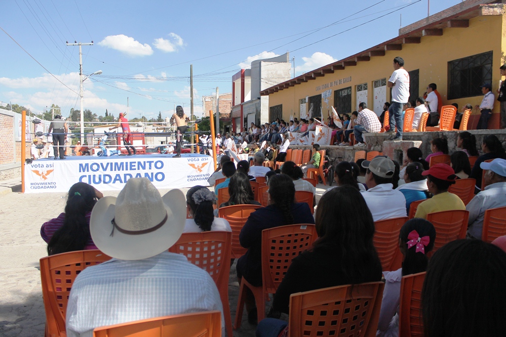 El candidato de Movimiento Ciudadano a diputado local por el II Distrito, José Luis Aguilera Rico, aseguró que decidió llevar lucha libre a Pie de Gallo, pues la semana pasada que visitó la comunidad, las madres de familia y los propios niños, le comentaron que nunca habían presenciado este tipo de espectáculo.