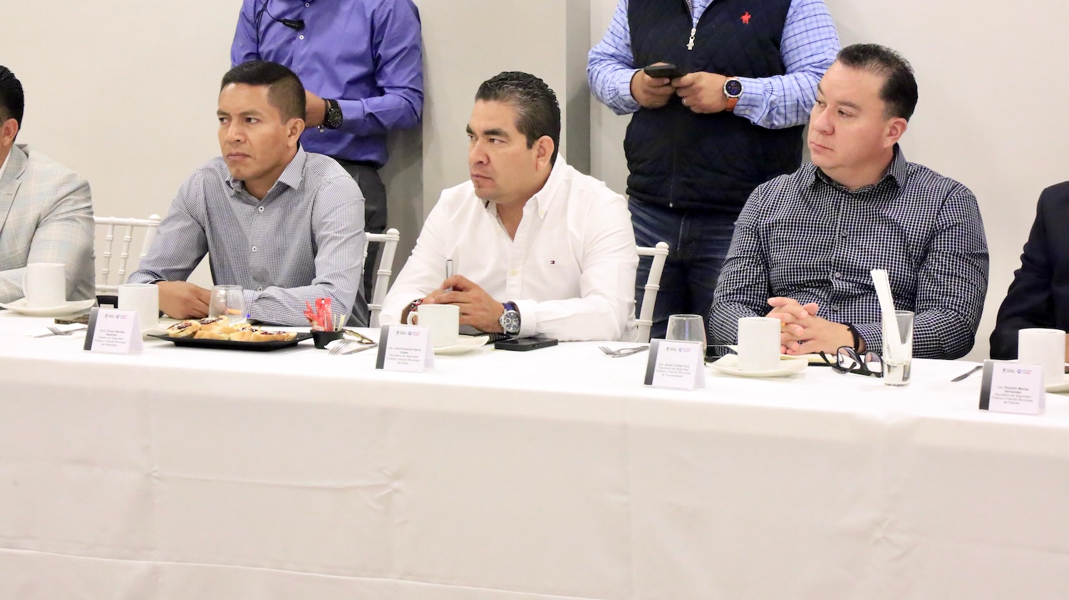 Con la presencia del presidente municipal, Gaspar Trueba Moncada, la reunión fue encabezada por el secretario de Seguridad Ciudadana del Estado, Iován Elias Pérez Hernández, acompañado de alcaldes y titulares de seguridad de municipios de esa región del estado.