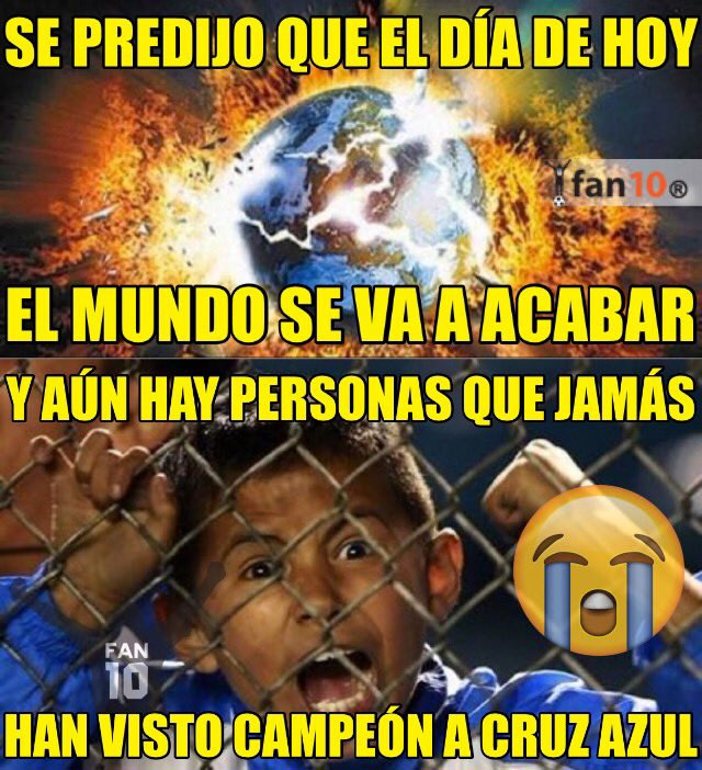 Los usuarios de las redes sociales lanzaron una serie de divertidas imágenes para festejar que no se cumplió la apocalíptica profecía que auguraba el fin de los tiempos… Una de ellas, del Cruz Azul.