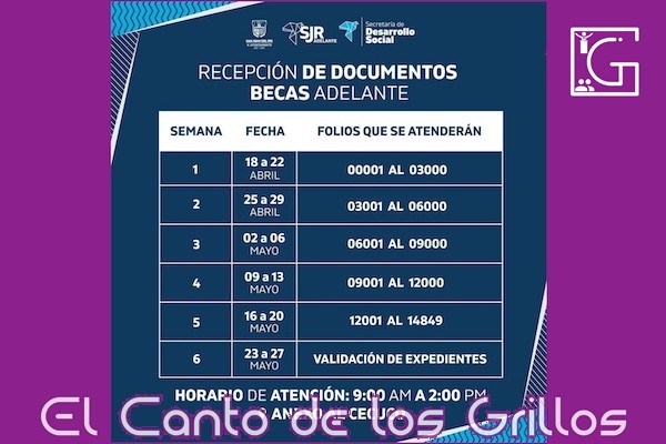 La Secretaría de Desarrollo Social del municipio de San Juan del Río recuerda a todos los beneficiaros de las “Becas Adelante” que el viernes 20 de mayo es el último día para la recepción de documentos.