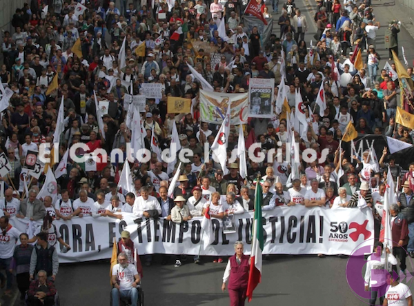 “Hace 50 años en la Plaza de las Tres Culturas se perpetuó un genocidio y aun seguimos sin castigar a ningún cumpla, por eso hoy exigimos justicia”, destacó Félix Hernández, quien fuera integrante del Comité del 68.
