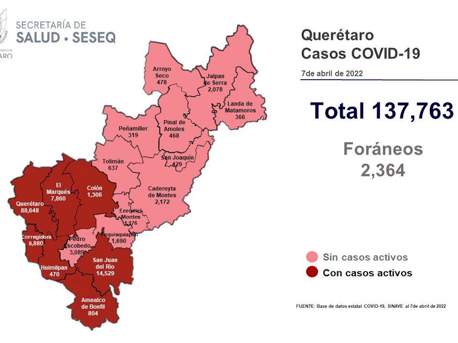 La Secretaría de Salud de Querétaro reportó este jueves cero defunciones por Covid-19, aunque se sumaron 97 casos de la enfermedad; se trata de 59 mujeres y 38 hombres. El registro acumulado es de 137 mil 763 casos; 52% son mujeres y 48% son hombres.