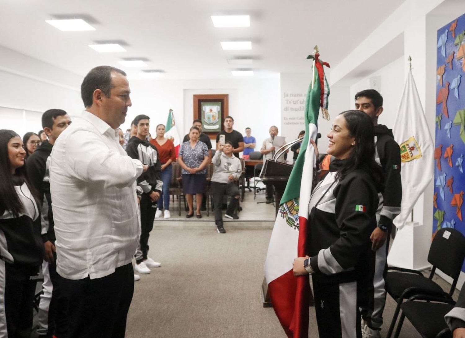 Al realizar expresiones artísticas, la compañía sanjuanense de danza Mecehualtin Mitotiani defiende y construye el alma de San Juan del Río, dijo el presidente municipal, Roberto Cabrera Valencia, al encabezar la ceremonia de abanderamiento de esta agrupación que realizará una gira de presentaciones en el continente europeo.
