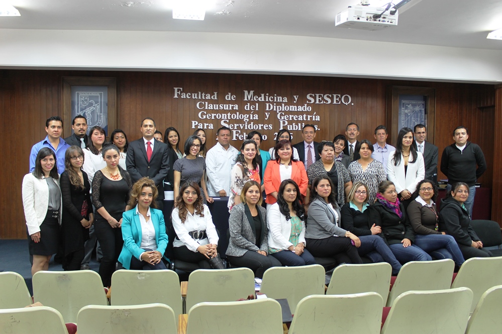 La Facultad de Medicina de la Universidad Autónoma de Querétaro, en coordinación con la Secretaría de Salud de la entidad, impartió el Diplomado en Geriatría y Gerontología para Servidores Públicos y entregó constancias de acreditación a 44 especialistas del área -entre personal médico, de enfermería, nutrición y servicio social-.