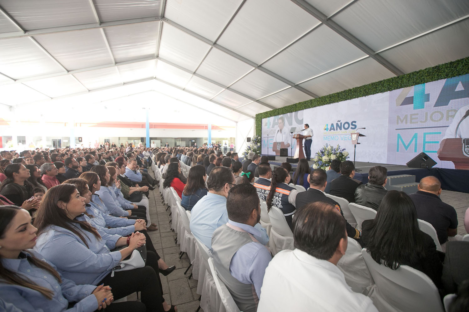 Ante ciudadanos de las diversas colonias y comunidades del municipio, representantes del sector empresarial, educativo y de la sociedad civil organizada, así como senadores, diputados, regidores y funcionarios de la administración municipal, el edil sanjuanense dio cuenta de las acciones y avances logrados bajo su gestión, respondiendo a las diversas necesidades de la población.
