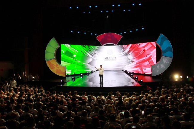 En el acto, al que asistió acompañado por su esposa Angélica Rivera de Peña, habló ante empresarios del sector turístico de México y 87 países, sobre el crecimiento en la tasa de visitantes, y confió en que el país pase pronto del noveno al octavo lugar de los destinos más visitados del mundo.