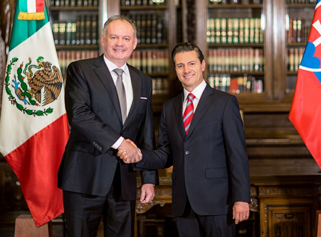 Los presidentes de México, Enrique Peña Nieto, y de la República Eslovaca, Andrej Kiska, acordaron incrementar la relación bilateral mediante diversos instrumentos de cooperación, así como impulsar el libre comercio.