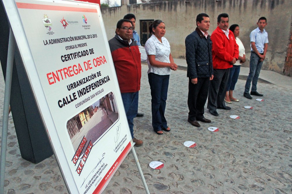 A esta entrega de obra también asistieron: Ana Ochoa Castillo, presidenta del Comité de Obra; Soledad Nieto Reséndiz, vecina de la calle Independencia; Guillermo Morales Ferrusca, Secretario de Desarrollo Urbano, Obras Públicas y Ecología Municipal; David Dorantes Reséndiz, Diputado local; y Juan Agustín Nieves Álvarez, Delegado de San Nicolás.