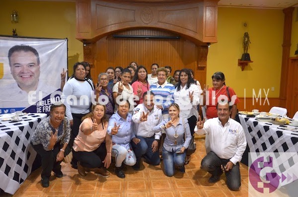 El candidato a la diputación federal por el II distrito de la Coalición Por México al Frente, Esaú Magallanes Alonso, se reunió con mujeres peregrinas que cada año caminan hacia la Basílica de Guadalupe, a quienes reconoció su compromiso y entrega en esta peregrinación en la que participan alrededor de 20 mil mujeres.