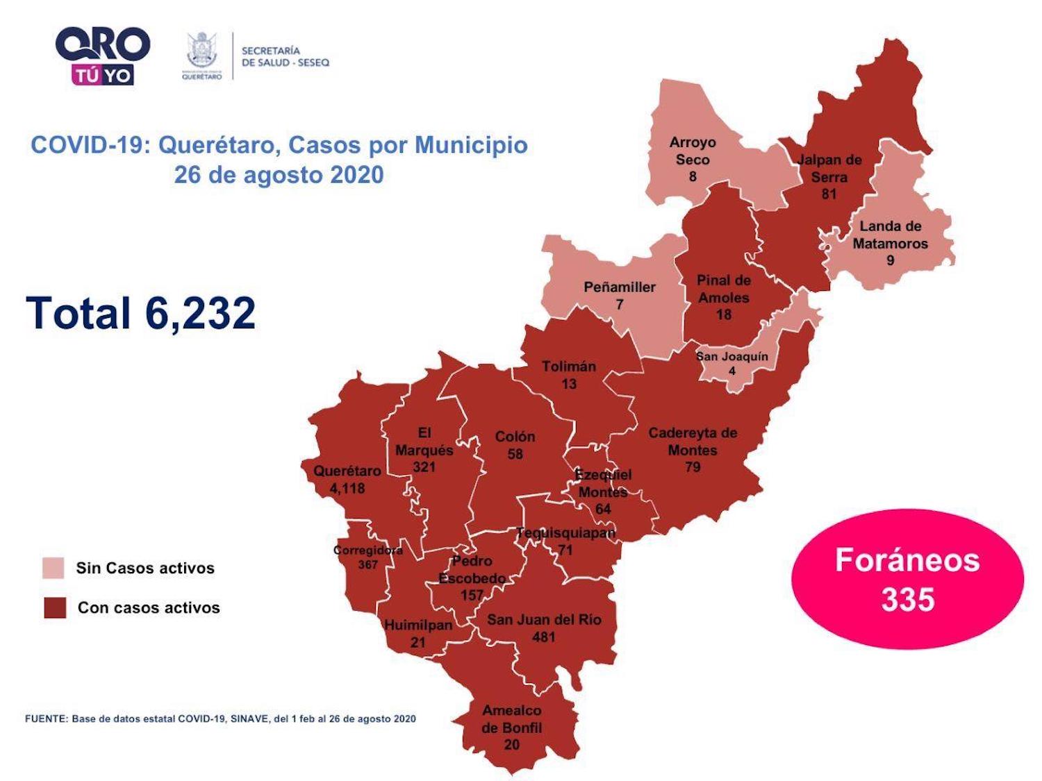 En Querétaro, una mujer de 66 años con diabetes y enfermedad pulmonar obstructiva crónica, una mujer de 84 con hipertensión, un menor de diez años con inmunosupresión, y un hombre de 55 sin comorbilidad, que se encontraban hospitalizados, fallecieron a causa de la enfermedad Covid-19.