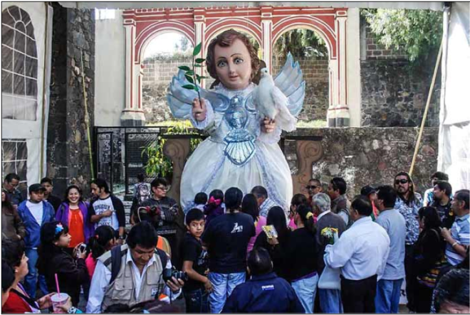 Los artesanos invirtieron 700 mil pesos en la creación de la imagen que tiene grandes ojos de vidrio color azul y pestañas, como las figuras pequeñas que cada Día de la Candelaria llevan los feligreses a los templos.