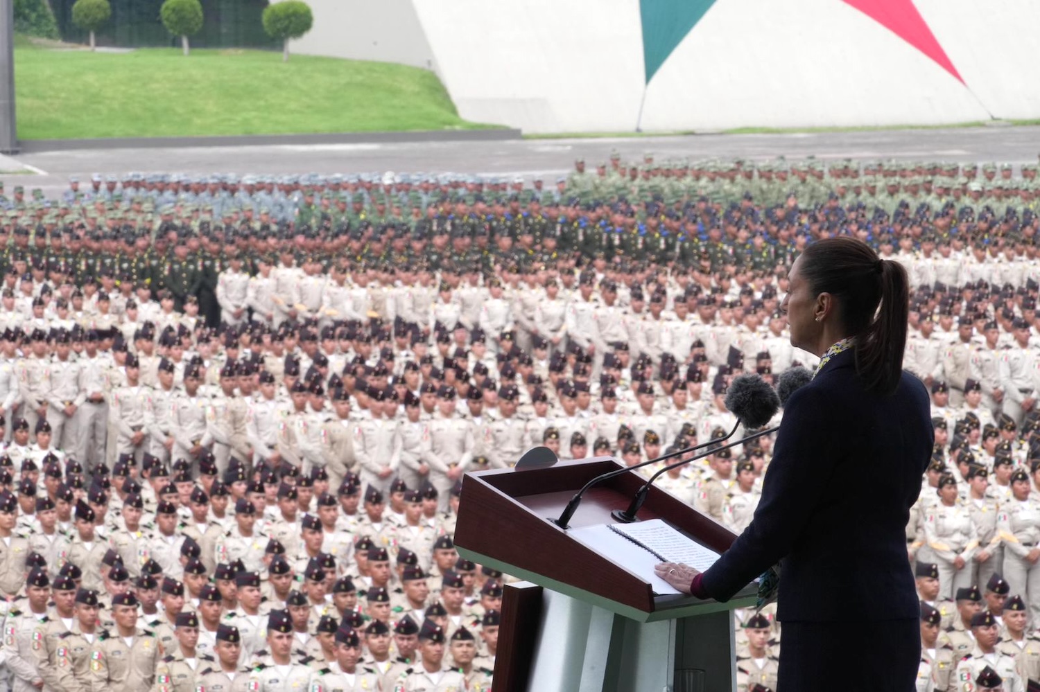 “En esta nueva etapa de la transformación, con honestidad, amor al pueblo y a nuestra patria, nos tocará juntas y juntos, seguir fortaleciendo la paz y la seguridad y a atender siempre con humanismo, disciplina y valor los problemas que tengamos que afrontar (…). Seremos perseverantes en la lucha contra el clasismo, el racismo, el machismo y cualquier forma de discriminación. Es decir, haremos de México un país todavía más próspero, justo e igualitario, y seguiremos engrandeciendo la dignidad y el orgullo de ser mexicanas y mexicanos. Fortaleceremos la Guardia Nacional como parte de la Secretaría de la Defensa Nacional y les convocaré para seguir apoyando en la construcción de grandes proyectos estratégicos como los trenes de pasajeros hacia el norte del país y los nuevos puertos. Son y van a seguir siendo los tiempos de las hazañas pacíficas”, manifestó.