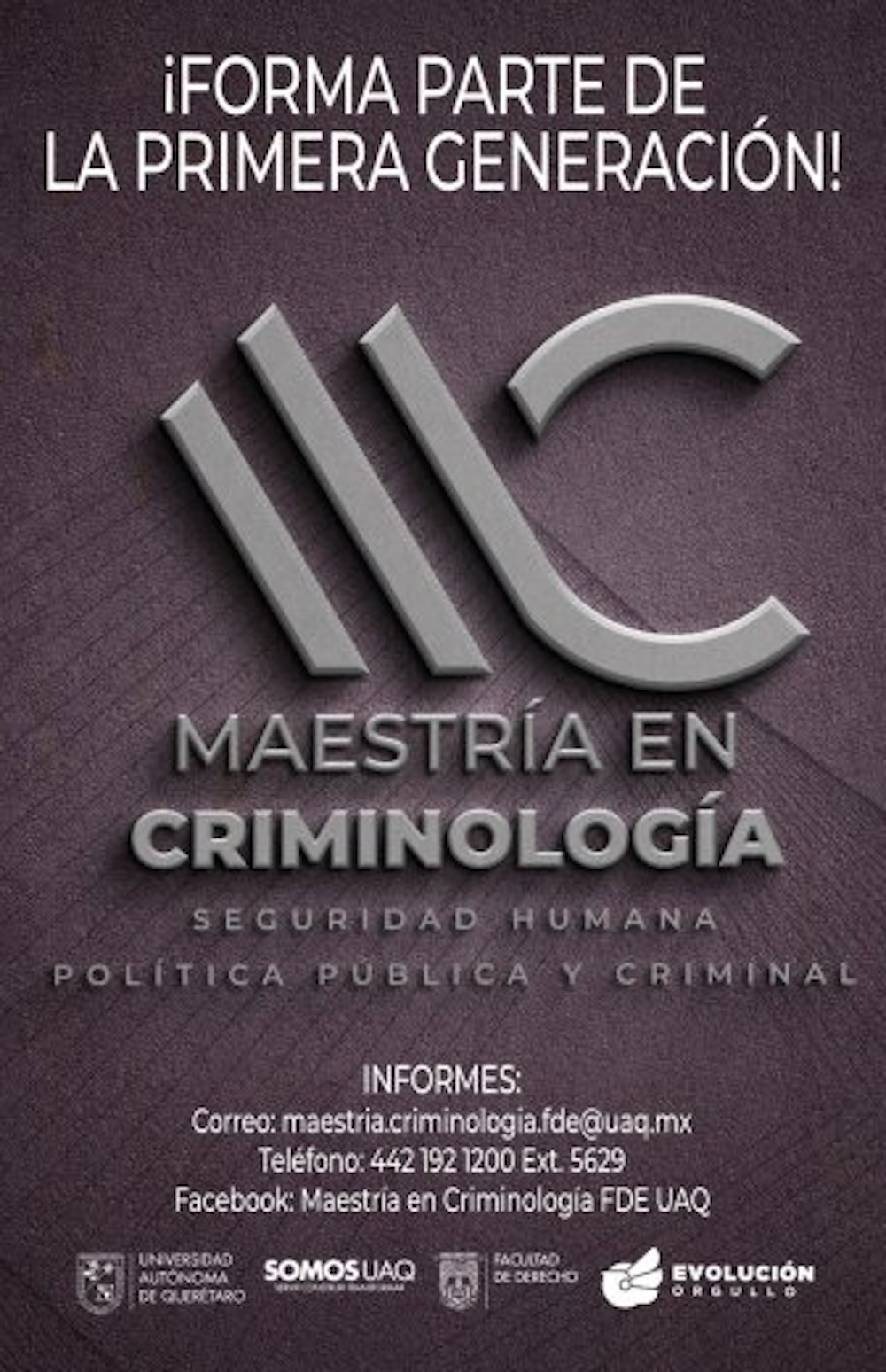 Con el objetivo de seguir formando profesionistas de alto perfil de las licenciaturas en Criminología, Ciencias de la Seguridad y Derecho, así como de otras áreas; la Facultad de Derecho de la Universidad Autónoma de Querétaro (UAQ) apostó por ofrecer la Maestría en Criminología.