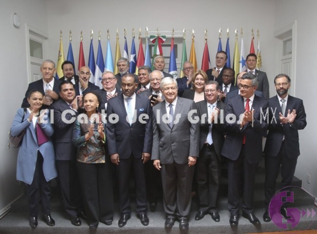 A través de su cuenta @lopezobrador_ de Twitter, el presidente electo dio a conocer un video donde acompañado de los embajadores afirmó que “nosotros siempre vamos a buscar la unidad, la cooperación con los países de América Latina y del Caribe” mediante una política exterior guiada por el principio de no intervención.