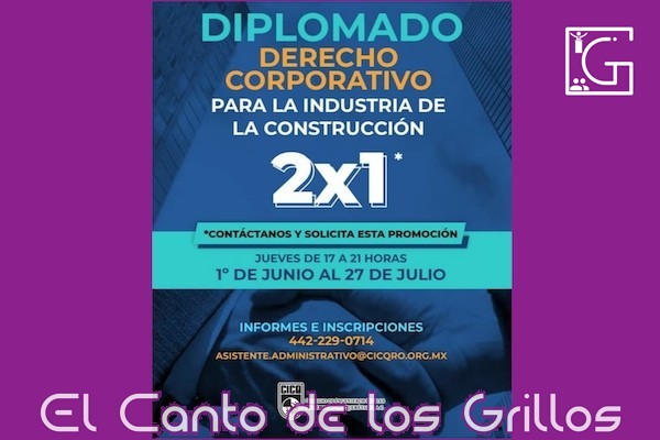 El diplomado se llevará a cabo del 1 de junio al 17 de julio, en las instalaciones del CICQ y en este momento ofrecen la oportunidad del 2×1 en la inscripción; “el objetivo de este diplomado es que los integrantes del sector de la construcción, conozcan las obligaciones legales, fiscales y corporativas que tienen, a fin de que, la administración de los diferentes modelos de negocios, les permita acceder a las diferentes ventajas que se tienen al ser una empresa o persona física con actividades empresariales”.