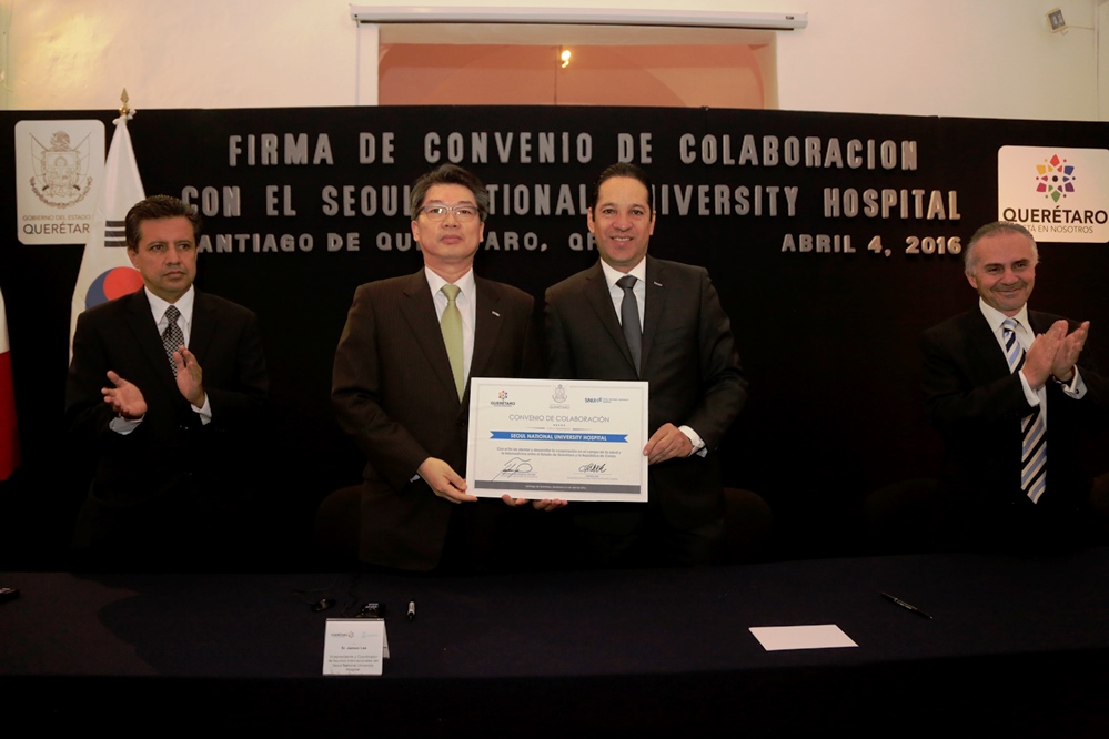 “En mi gobierno estamos trabajando para que prevalezca el derecho humano a la salud, así como el acceso pleno a la seguridad social, por parte de las y los queretanos”, consignó luego de firmar el convenio de colaboración entre el Gobierno del Estado y el Hospital de la Universidad Nacional de Seúl.