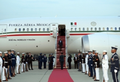 El primer mandatario, acompañado de su esposa, Angélica Rivera de Peña, partió a las 21:10 horas del Hangar Presidencial, con rumbo a la Base Militar de CATAM, en la Ciudad de Bogotá.