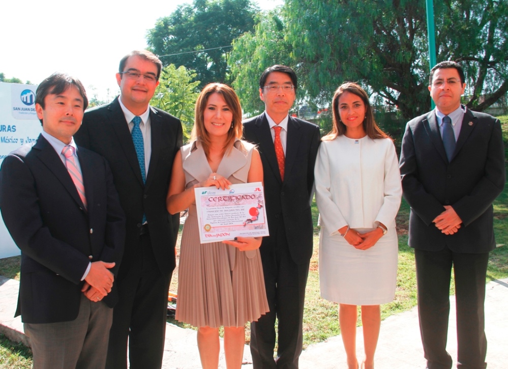 Previo al protocolo de inauguración, el Embajador de Japón en México, Akira Yamada, entregó un árbol Sakura, a la esposa del Presidente Municipal, Sra. Male Ruiz de Vega, como símbolo de hermanamiento entre Japón y San Juan del Río.