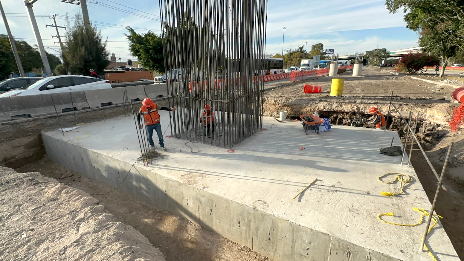 Asimismo, comentó que se construyen zapatas, las cuales servirán como ancla para dar estabilidad a las superestructuras con el suelo. Esta semana, dijo, se prevé tener listas cinco como las que ya se observan en cruceros de la colonia La Obrera y Avenida Zaragoza, donde también se empiezan los trabajos para las columnas de los puentes.