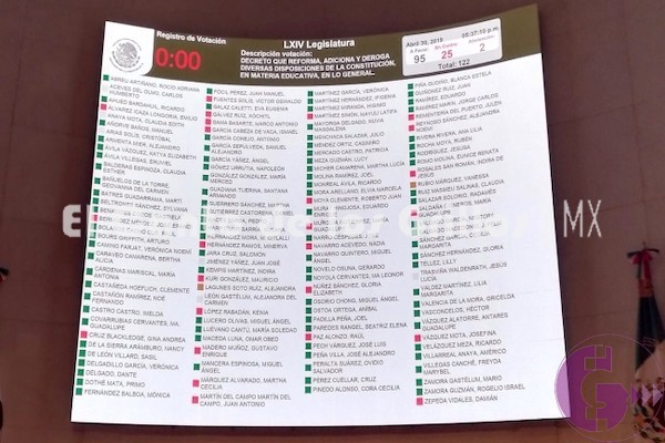 El Senado de la República aprobó en lo general con 95 a favor, 25 en contra y dos abstenciones, la Reforma Educativa que envió el presidente Andrés Manuel López Obrador y que deroga, entre otros cambios, la establecida en el sexenio de Enrique Peña Nieto.