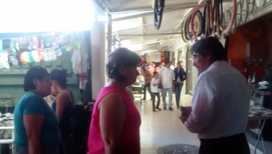 En actividades proselitistas en la zona, el también catedrático universitario prestó atención a las demandas de los locatarios del Mercado Santa Rosa, quienes le señalaron que la apertura de una sucursal de una cadena de supermercados, les genera competencia desleal.
