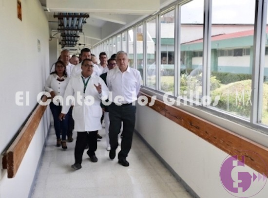 El presidente Andrés Manuel López Obrador recorrió el hospital inaugurado el 15 de junio de 1993, que atiende a una población adscrita de 19 mil 452 personas, cuenta con 30 camas censables y ocho camas no censables.