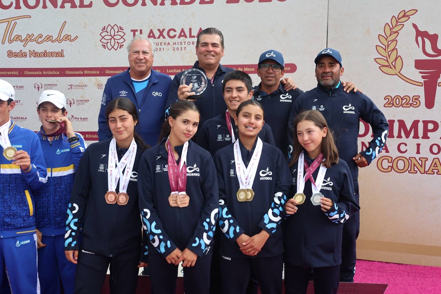 La delegación queretana de tenis ganó el tercer lugar general de la Olimpiada de la Comisión Nacional de Cultura Física y Deporte (Conade), tras ganar seis medallas tanto en modalidad individual como en dupla (dos de oro, una de plata y tres de bronce), al enfrentar a entidades como Yucatán, Puebla, Nuevo León, Aguascalientes y Guanajuato, durante las competencias llevadas a cabo en el Estado de Tlaxcala.