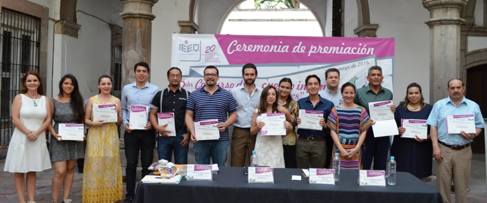 También se dieron reconocimientos a los integrantes del jurado: María Luisa Álvarez Hernández, Coordinadora de Licenciatura en Estudios Literarios de la Facultad de Lenguas y Letras de la UAQ; Azucena Ochoa Cervantes, Coordinadora de la Maestría en Educación para la Ciudadanía de la misma universidad; Aidé Terán Rivera, Jefa del Departamento a la Lectura de la USEBEQ; Jesús Hernández Briseño, Director de la Escuela Normal Superior del Estado de Querétaro; Alfonso Carrasco Mato, Director de Comunicación Institucional de la Universidad Cuauhtémoc; Jorge Vázquez Martínez, Vocal Ejecutivo de Capacitación Electoral y Educación Cívica de la Junta Local del INE en Querétaro, y Arturo Santana Sandoval, docente de la Universidad Pedagógica Nacional.