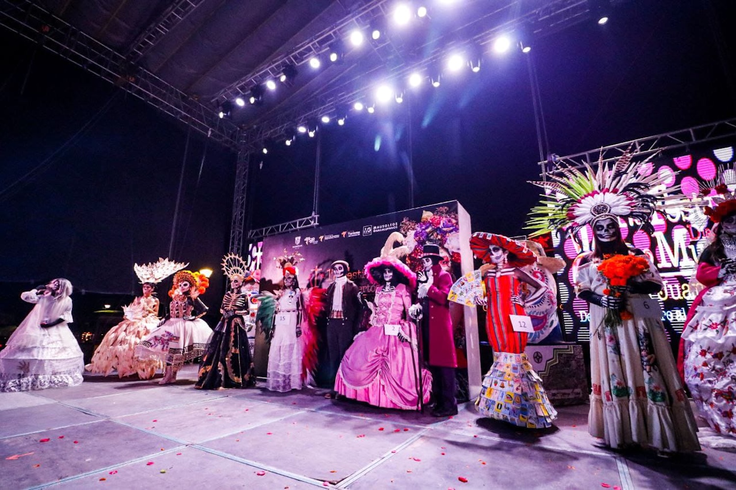 Entre luces, música y aplausos por parte del público, caminaron por la pasarela Catrinas como La Novia, La Familia de Catrines, Las Semillas, Chichimeca, Purgatorio, Arte Barroco, La Lotería, Diosa del Maíz y Azteca. A cada participante le fueron calificados el vestuario, maquillaje, la pasarela, la explicación y la originalidad.