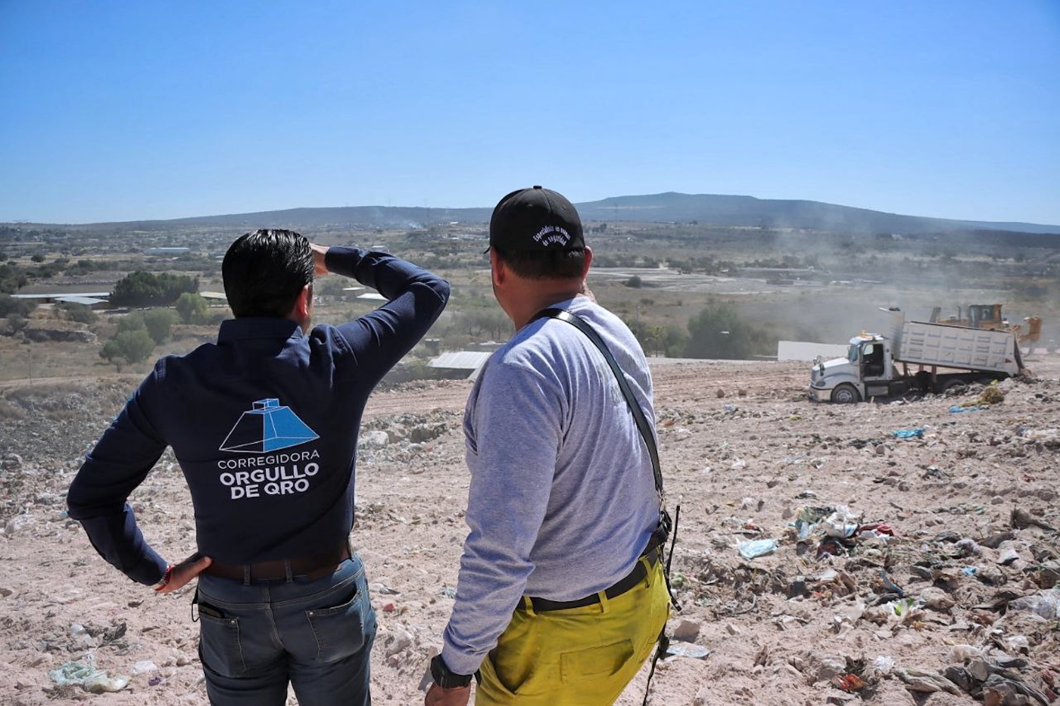 El presidente municipal de Corregidora, Roberto Sosa Pichardo, llevó a cabo un recorrido en el relleno sanitario “El Paraíso” para verificar los trabajos que se están realizando para la mitigación del fuego, donde se tiene un avance del 80% en la contención del incendio.