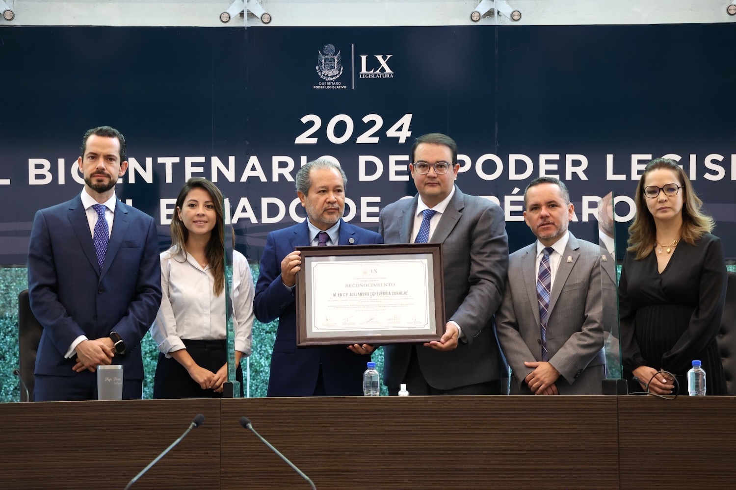 Finalmente, el presidente de la Junta de Coordinación Política del Poder Legislativo, diputado Guillermo Vega Guerrero, entregó un reconocimiento a Alejandro Echeverría Cornejo, por su trayectoria a favor de la seguridad de las familias queretanas y de la impartición de justicia en nuestro estado a lo largo de estos ocho años de trabajo al frente de la Fiscalía General del Estado de Querétaro.