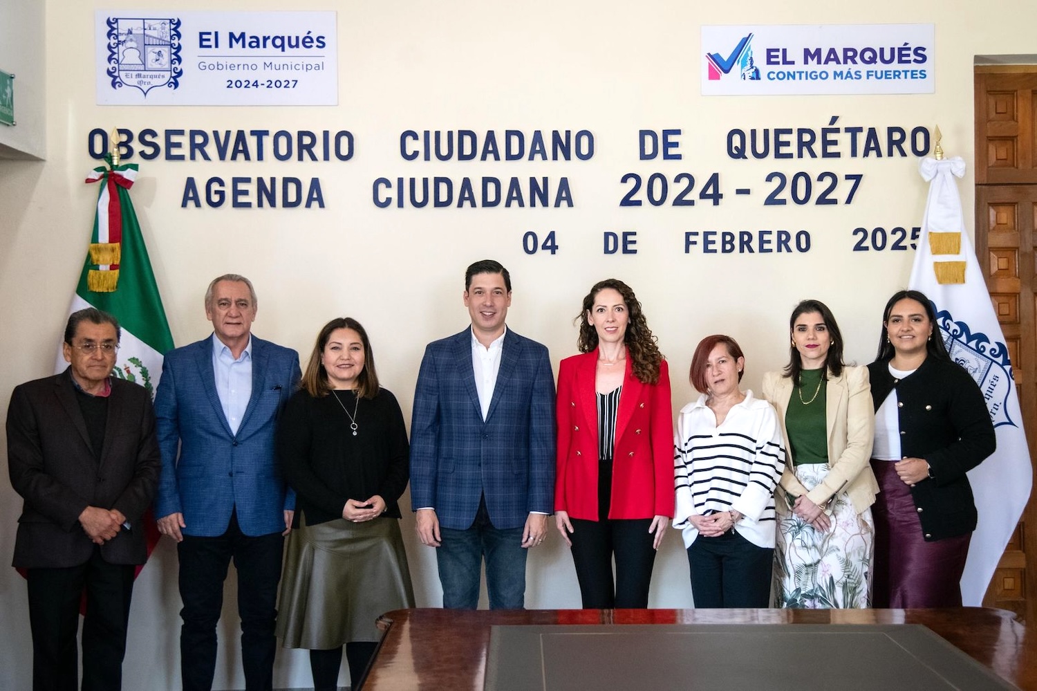 El presidente municipal de El Marqués, Rodrigo Monsalvo Castelán encabezó la ceremonia en la que el Observatorio Ciudadano de Querétaro presentó la Agenda Ciudadana 2024-2027, misma que tiene como objetivo promover la participación ciudadana y fomentar los derechos humanos.