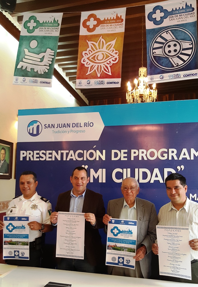 Al ofrecer una breve reseña histórica, el Cronista de la Ciudad, José Velázquez Quintanar, recordó: “nos tocó el privilegio de estar en el trazo del Camino Real de México a Zacatecas y después de “Tierra Adentro”. En esas etapas que ha tenido San Juan del Río en su desarrollo, inicialmente en la producción y después por el Camino Real, fue lo que le dio vida. En 1847, aprovechando que pasa por aquí el Licenciado Manuel de la Peña y Peña, que traslada los poderes de la República a la Ciudad de Querétaro, el Cabildo le solicitó que le diera otra categoría a este pueblo, en esta época era Villa de San Juan del Río, entonces tenemos 169 años de que fue declarada Ciudad”.