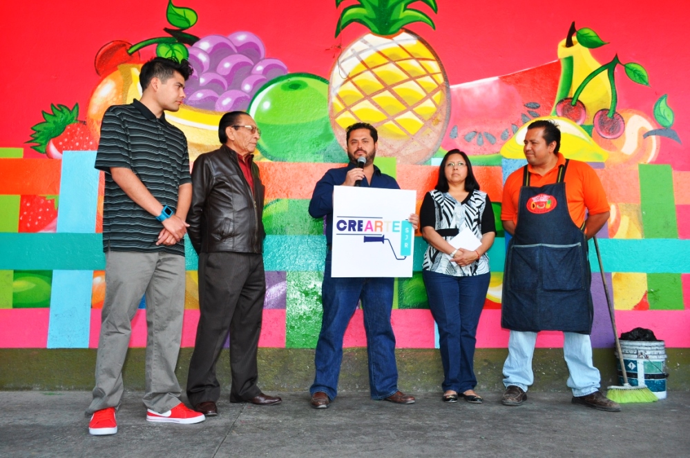 En el evento que se llevó a cabo en el Mercado Reforma, lugar en donde se pintó el primer mural, el Regidor Jesús Mejía Cruz, en representación del Presidente Municipal, explicó que Crearte es una estrategia que pretende realizar actividades para la reconstrucción del tejido social, mediante la intervención artística.