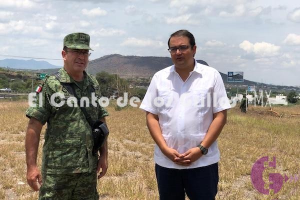 El presidente municipal, Memo Vega presentó ante el comandante del 7º Regimiento Mecanizado de La Llave, teniente coronel de Arma Blindada, José Luis Quiñones de la Fuente, el predio en el que se construirá una base regional de la Guardia Nacional para reforzar las acciones de seguridad.