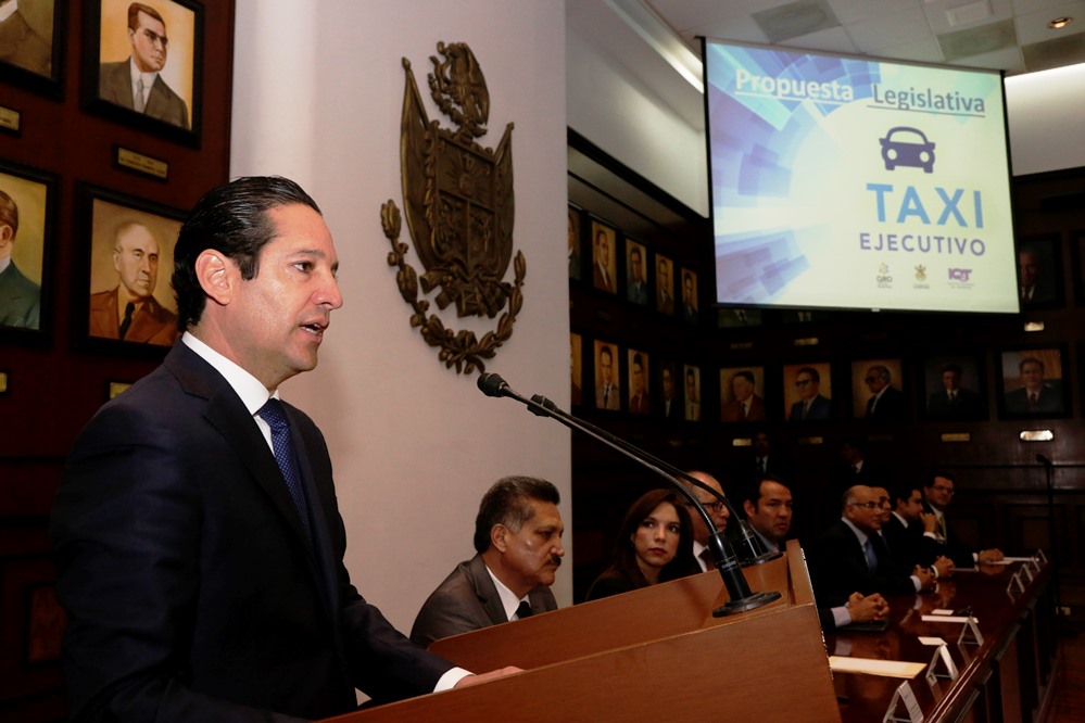 El gobernador Francisco Domínguez Servién presentó una iniciativa que recoge las inquietudes del gremio de taxistas y concretó una propuesta de Reforma a la Ley de Movilidad, para que en un plano de igualdad compitan las empresas globales con las locales.