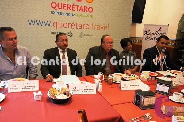 El secretario de Turismo, Hugo Burgos García, y el presidente municipal de Colón, Alejandro Ochoa Valencia, encabezaron la presentación de “Xhönte Colón Fest”, primera vendimia del valle de Colón, que se realizará el 17 y 18 de agosto en la explanada de la Basílica Menor de Soriano de aquel municipio.